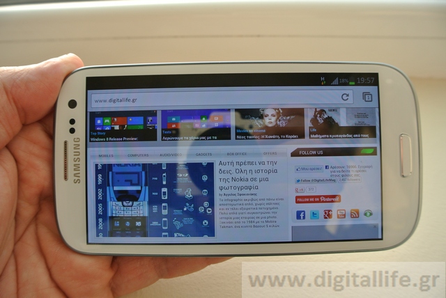 Μιας που μιλάμε για ψάξιμο να πούμε ότι δεν αναφέρθηκε ποτέ από επίσημα χείλη ότι ο αισθητήρας που χρησιμοποιεί το S III είναι της Sony ή αν προτιμάς καρμπόν με εκείνον του τελευταίου iPhone. Όχι πως θα σε χαλάσει… Βασικά στο φωτογραφικό κομμάτι το τελευταίο Galaxy χωρίς να διαφημίζει τα οπτικά του, είναι εξαιρετικό. Δεν είναι ότι κερδίζει απαραίτητα σε ποιότητα το HTC One X, όσο ότι λειτουργεί αλάνθαστα, παράγει εικόνες με μηδενικό θόρυβο και σχεδόν πάντοτε αντιλαμβάνεται που θέλεις να εστιάσεις. Έστω και αν θα προτιμούσα να μου δίνεται και η χειροκίνητη επιλογή, με ένα άγγιγμα στην οθόνη. Καλά λόγια έχω να πω και για το βίντεο, μόνο που εδώ υπάρχει το σπαστικό autofocus που δουλεύει υπερωρίες, χαλώντας το τελικό αποτέλεσμα. Εκτός και αν το προς λήψη θέμα είναι πολύ συγκεκριμένο.