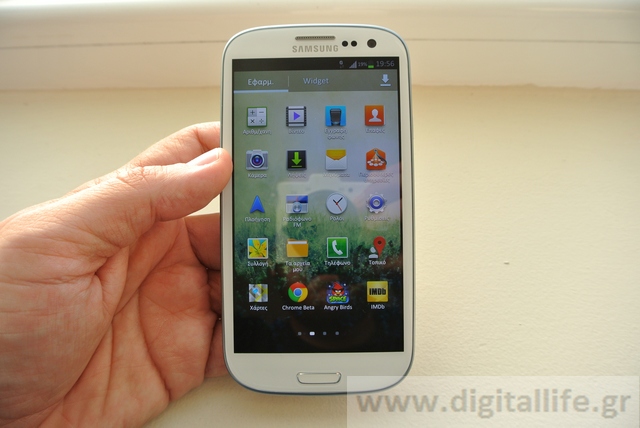 Αντί για όλα αυτά λέω να ξεκινήσω από την ανάποδη. Με το στάδιο σύγχυσης που πέρασα την πρώτη ημέρα. Το S III είναι στο λευκό χρώμα (γιατί το μπλε λόγω προβλημάτων στην παραγωγή θα καθυστερήσει λίγο) που κατά την ταπεινή μου γνώμη, είναι και το πιο ελκυστικό σχεδιαστικά. Το παίρνεις στα χέρια σου και ξενερώνεις με τα πλαστικά και αυτή την αίσθηση ότι το κινητό κινδυνεύει να σου φύγει ανά πάσα στιγμή από τα χέρια. Ούτε σαπούνι… Οι καμπύλες πάντως το κάνουν πολύ πιο συμπαθητικό από το κοφτερό S II. Ιδίως στην πίσω όψη που το «πηγούνι» του προκατόχου έχει πάει περίπατο. Το touch στην οθόνη είναι κλάσης ανώτερο, το ανανεωμένο TouchWiz αιώνες μπροστά και το Android ICS έχει δώσει νέα πνοή στο κορεάτικο software που για να πω την αλήθεια πότε δεν ήταν το αγαπημένο μου. Μια παρατήρηση μόνο: η ψαλίδα με τα πιο εξευγενισμένα Android (βλ. HTC με Sense) έχει κλείσει σημαντικά. Και όλα αυτά γιατί η Samsung προσπάθησε για πρώτη φορά να δείξει ότι Galaxy δεν είναι μόνο hardware. Έστω και αν δεν ξέφυγε από το γνωστό μοτίβο που λέει ότι κάθε νέο μοντέλο πρέπει να είναι ακόμη πιο εντυπωσιακό. Κάθε φορά μεγαλύτερο, ισχυρότερο, ανώτερο. Και συνήθως ακριβότερο…