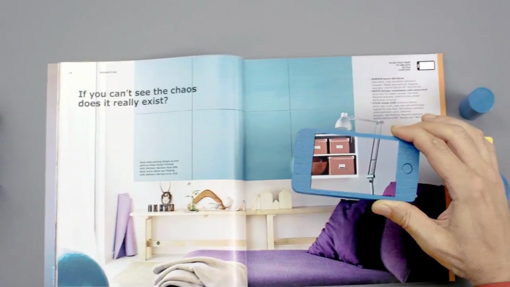 Η εταιρία εκτός από τα σχέδια της για λανσάρισμα Internet-connected TV, σχεδιάζει ο επόμενος κατάλογος της να έχει και μια smartphone application που να τον μετατρέπει σε augmented reality εμπειρία. Η Ikea τυπώνει και στέλνει 210 εκατομμύρια καταλόγους της κάθε χρόνο ενώ ο “augmented reality catalog” θα κάνει το εξής: θα μπορείς να πάρεις το κινητό, να ‘κοιτάξεις’ με την κάμερα του προς ένα έπιπλο να να το δεις σαν με “ακτίνες X”. Στη συνέχεαι θα έχει links σε βίντεο, 3D μοντέλα και ψηφιακά ‘κάντο-μόνος-σου’.
