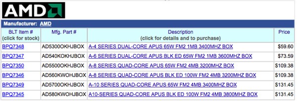 Oι τιμές στις οποίες θα πωλούνται οι επερχόμενοι επεξεργαστές της ΑΜD,Trinity, διέρρευσαν πρόσφατα στο διαδίκτυο και όπως μπορείτε να δείτε και μόνοι σας παρακάτω, η τιμολογιακή πολιτική της εταιρείας είναι ιδιαίτερα ενδιαφέρουσα και κυρίως ανταγωνιστική.