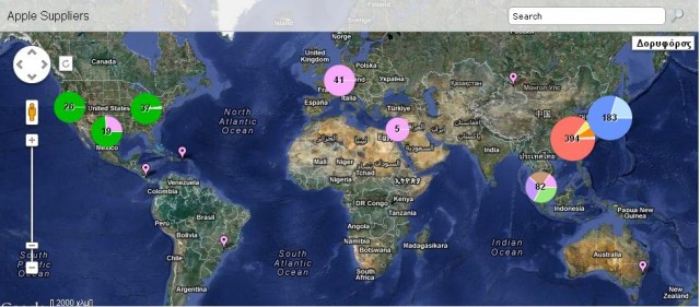 Αναρωτιόσασταν ποτέ από πού προμηθεύεται η Apple τα διάφορα εξαρτήματα για τις συσκευές που βρίσκουμε στα Apple Stores και τα Apple Resellers; Εδώ και δύο χρόνια η Apple δημοσιεύει μία πλήρη λίστα με όλους τους προμηθευτές και ο David Barreda από το China File, κάθισε και έφτιαξε έναν διαδραστικό χάρτη με όλους τους προμηθευτές της εταιρίας του Cupertino σε όλο τον κόσμο.